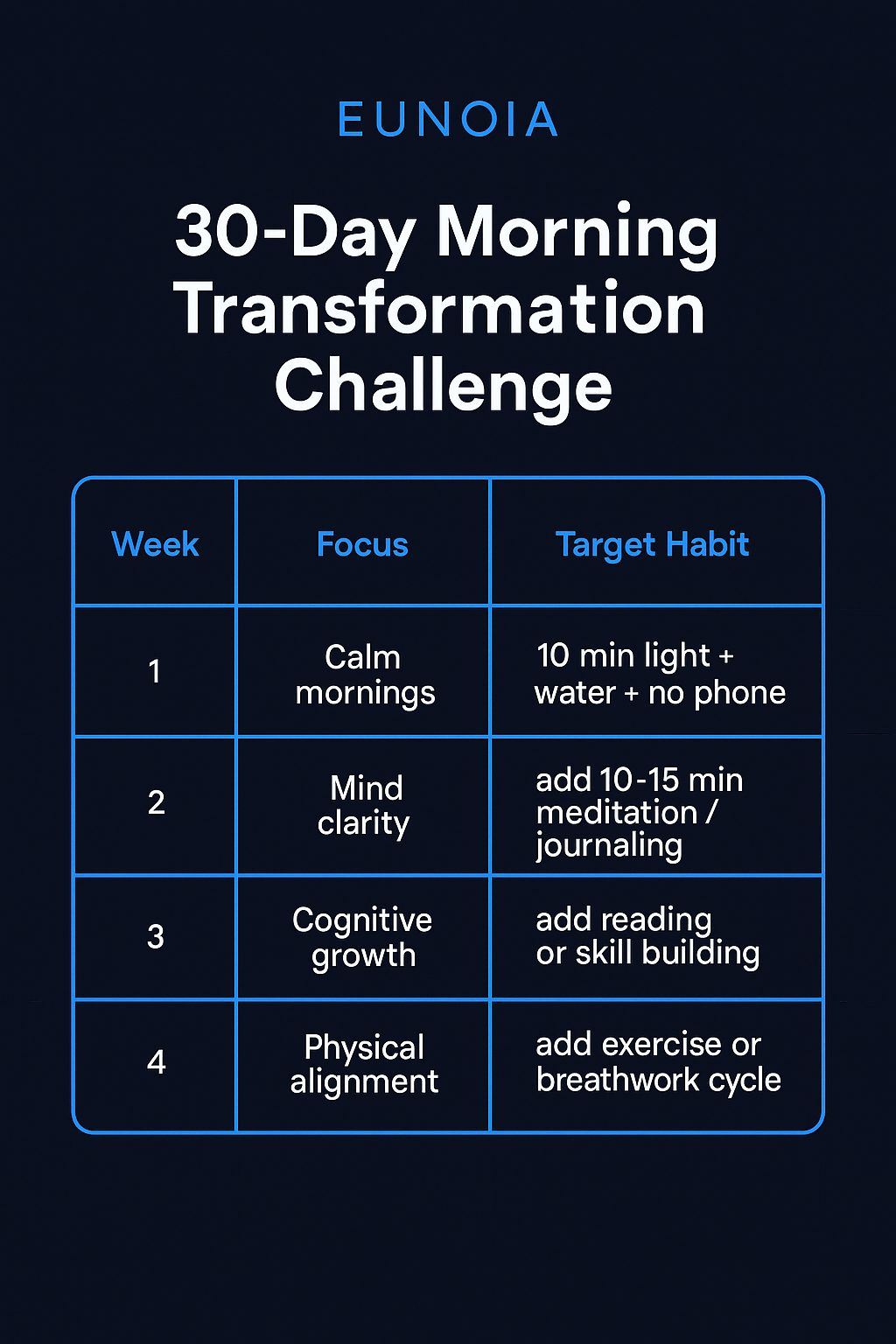 Here is a practical, progressive 4-week system designed to build a sustainable morning identity: