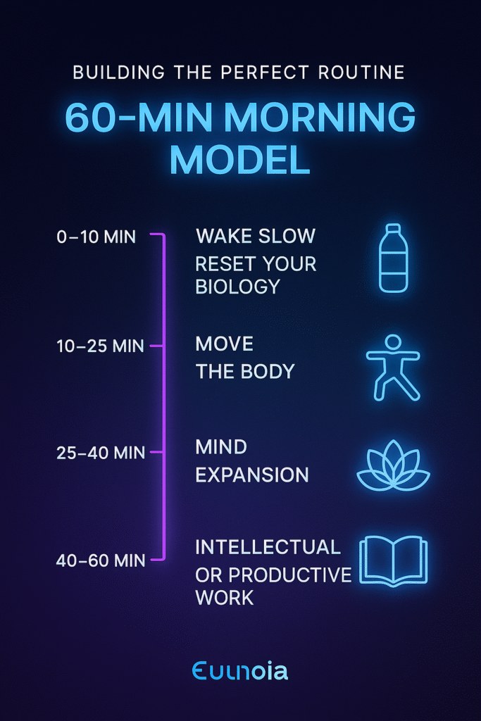 In this article, we explore the science behind mornings, why so many people start the day in a reactive state, and how the structure of your first hour influences your long-term evolution. Most importantly, we’ll look at how Eunoia — your AI-driven behavioral mirror — can design, optimize, and adapt your morning routine based on your real cognitive patterns, not generic advice.